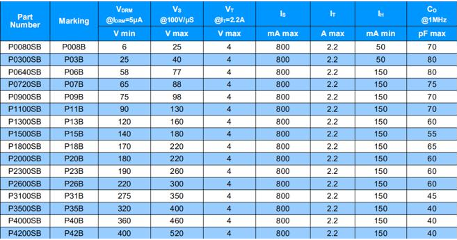 PXXX0SB系列TSS半導(dǎo)體放電氣管參數(shù)圖表如下